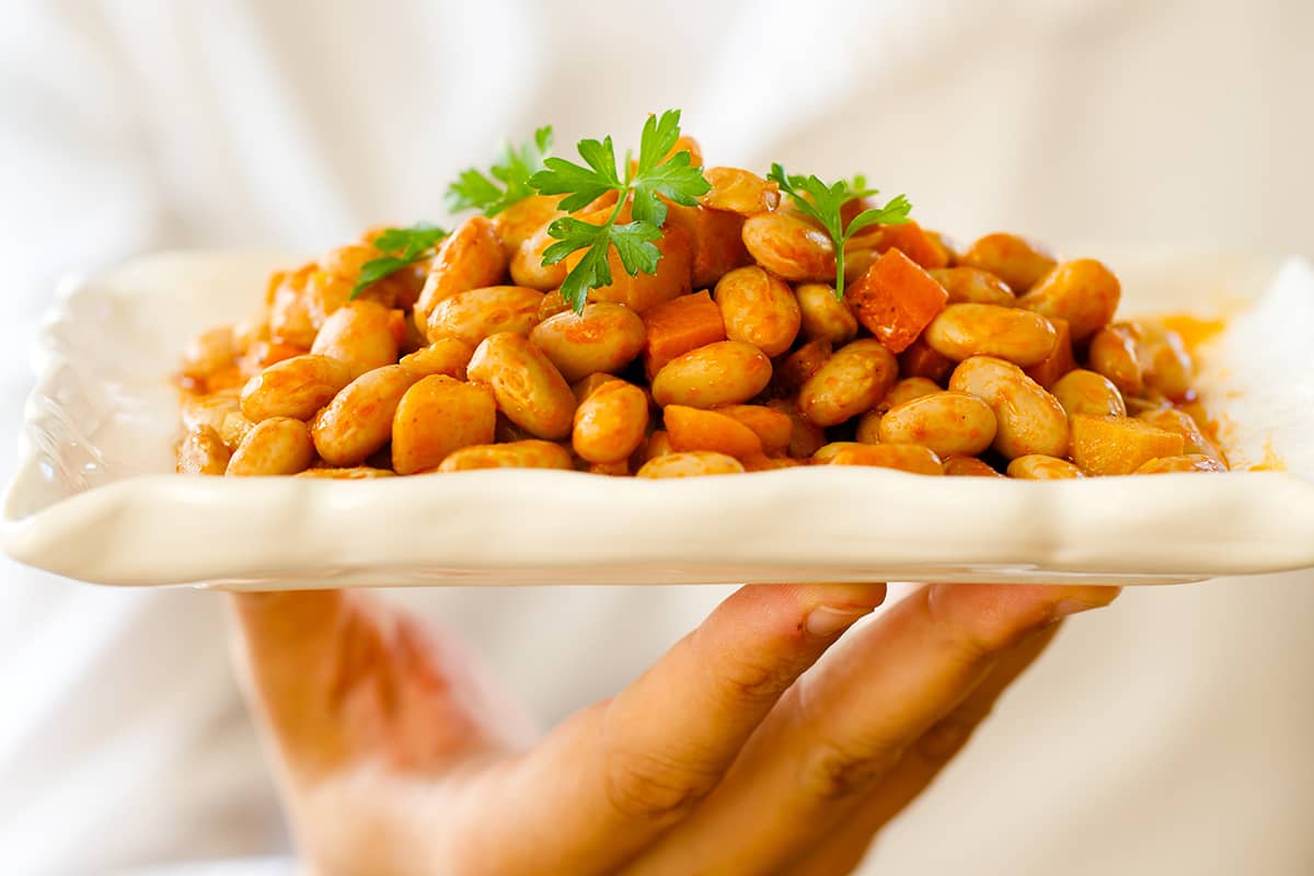 Onions and tomatoes are the perfect accompaniments to the beans, and zeytinyağlı barbunya can be enjoyed as a side dish or a meze. This mouth-watering dish is also perfect for vegetarian and vegan diets – like many other olive oil dishes on this list!